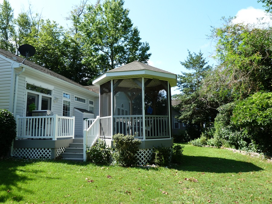 The outdoor shower is refreshing when you come back from the beach. The spacious rear deck, with barbecue and dining table, offers beautiful sunset views, and you can enjoy the balmy evenings on the screened-in gazebo overlooking the pond.