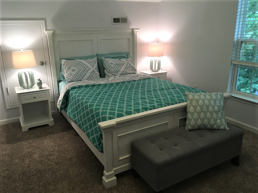 The 4th bedroom (queen-size bed) and a 3rd bathroom with shower/tub combo are located upstairs.