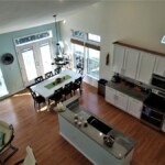 The open floor plan with cathedral ceilings, tall windows, and beautiful hardwood floors, offers an inviting gourmet kitchen with granite countertops, dining area, and living room for you to relax in front of the gas fireplace.